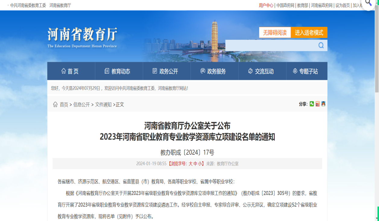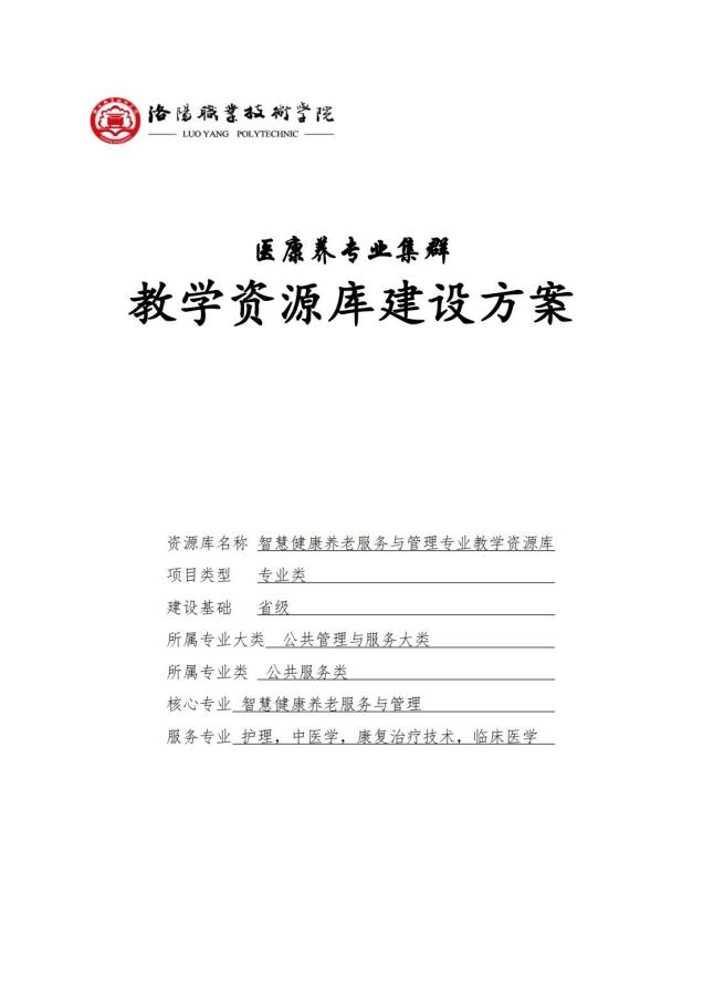 国家级教学资源库:智慧养老服务与管理专业(主持)、护理专业(联合主持)