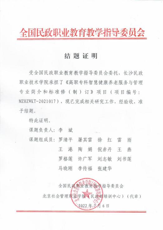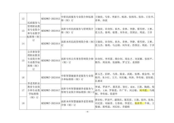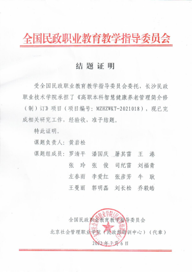 6 | 2022.07 | 编写全国民政职业教育教学指导委员会课题“养老类职业教育专业简介和专业教学标准修(制)订 | 教学标准 | 刘书莲 | 编者 |