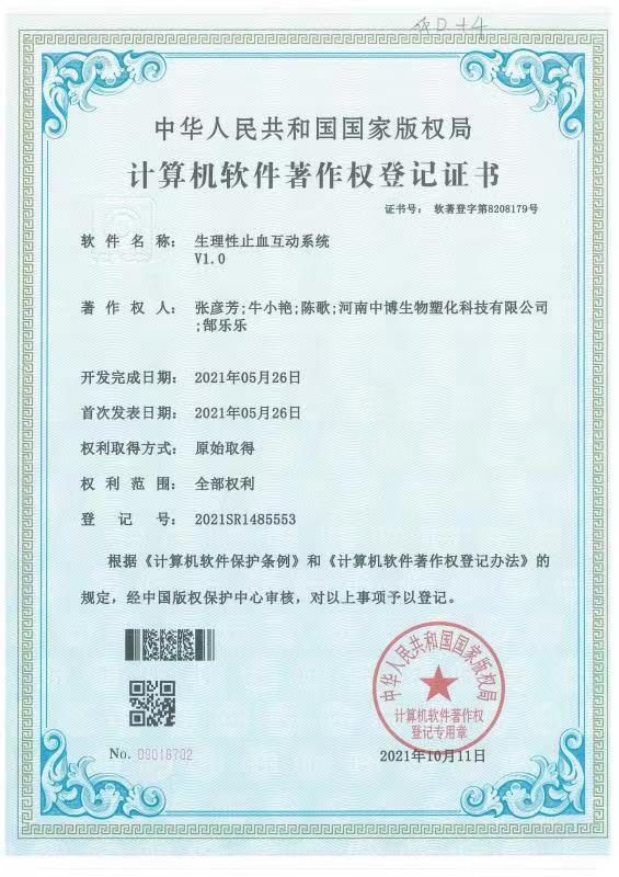 1 | 2021.10 | 生理性止血互动系统 | 软著 | 张彦芳 | 第一 |