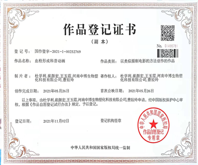 3 | 2021.11 | 血栓形成科普动画 | 软著 | 杜学利、崔颜宏 | 第一、第二 |